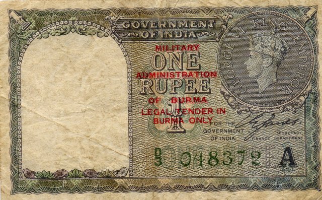 GOVERNMENT OF INDIA - MILITARY ADMINISTRATION OF BURMA - 1940 ONE RUPEE NOTE - FACE