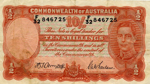 COMMONWEALTH OF AUSTRALIA - TEN SHILLINGS - FACE SHOWING WATERMARK