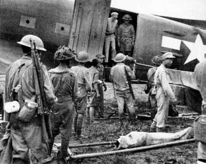 WOUNDED AND SICK CHINESE OF MERRILL'S MARAUDERS FORCE ARE EVACUATED IN BIG TRANSPORT