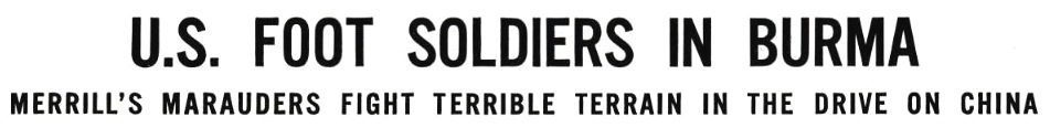 In spite of these hazards, the small force of U.S. troops fighting in Burma has accomplished some military prodigies.Under the command of Brig. General Frank Merrill, they hiked over one mountain range in March to cut off the Japanese facing Lieut. General Joseph Stilwell's main forces in the Hukawng valley.Last month, accompanied by Chinese, they crossed another range into the valley of the upper Irrawaddy, marching 100 miles in 25 days to take a key airfield south of the big Japanese base of Myitkyina.Today U.S. and Chinese troops are battling inside Myitkyina, which the Japanese have turned into a minor Cassino.On this page is shown the photographic record made by LIFE's Bernard Hoffman of Merrill's great march and the capture of Myitkyina airfield.