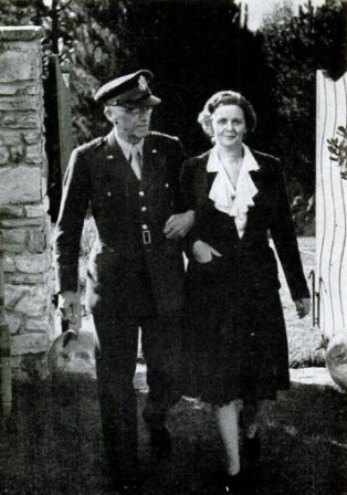 With his wife, the former Winifred Alison, Stilwell strolls through well-kept yard of his home.