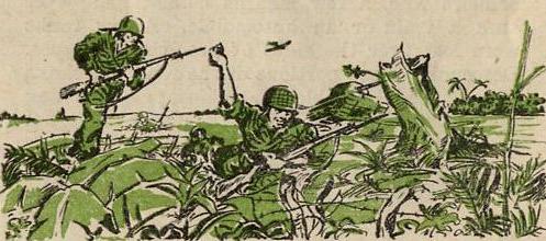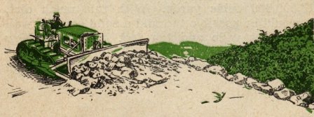 "I can't build you a jeep trail, but I'll build you a road that will handle truck traffic. Tell me whenyou want it," Pick said. "Can you get it through by the first of the year?" Stilwell queried. "Yes", wasPick's only answer. On the morning of December 27, 1943, the lead bulldozer broke the tape at Shingbwiyang in Burma'svast Hukawng Valley, four days ahead of schedule, and a thrilling saga of the war was unfolded. Thetenacious, toiling engineers, working unceasingly despite mud, leeches, malaria and treachery of the jungle, had cut 54 miles of road in 57 days. A convoy of 55 trucks carrying Chinese combat troopsand equipment followed the lead bulldozer into Shingbwiyang, the first Allied soldiers to enter NorthernBurma by vehicle. In the ensuing months, culminated when he rode into Kunming at the head of the first convoy to China, Pick planned boldly, followed through to swift completion and instituted many far-reaching innovationsin his determination to complete the project. He diverted engineers from work on Stilwell Road to cleara combat road through the jungle; he had depots set up to supply troops in the forward areas, and his engineers built air strips to enable us to gain control of the skies over Burma. A plan was worked out with the Air Force to co-ordinate and administer air supply for greater efficiencyand increased tonnage. Under this pooling arrangement in June 1944, air lift tonnage was increased morethan 100 percent in 30 days above Air Force estimates. From the beginning, Pick surrounded himself with able, hard-hitting officers and men. Col. Charles S. Davis, holder of the Legion of Merit and executive officer of the project until he assumed command ofthe Stilwell Road Motor Transport Service, carried out the sweeping plans for supply, and administeredthe huge undertaking. A graduate of the University of Missouri as a civil engineer, Davis was a construction engineer in civilian life, and his executive ability was utilized to the fullest. Col. Robert Green, University of Illinois graduate and former blocking back for Red Grange, worked in conjunction with the road planners. Col. Green in charge of Road Headquarters, was in the field constantly,supervising, consulting and advising the engineers who cut the highway to China. But the building of so vast a project as the Ledo Road was not the work of only a few. It required ablestaff officers, field commanders and thousands of troops, white and colored, of every rank and fromevery walk of life to complete the task. Col. Robert A. Hirshfield, constantly working in the forward areas, planned and built the huge sub-depotsat Shingbwiyang and Myitkyina, enabling the advancing combat and service troops to have supplies andequipment on hand at all times. Col. DeWitt I. Mullett, commanding officer of a Quartermaster truckingregiment was long an adviser in transportation matters. Lt. Col. Donald L. Jarrett was in charge of road maintenance and, with his men, battled to keep the highwayopen during the dread monsoon periods. First American to march over the Himalayas was Maj. James H. Kaminer who, with 16 men, surveyed a possibleroute for Stilwell Road to China. Although in constant danger of Jap patrols and working with old and incomplete maps, Maj. Kaminer and his party completed their mission successfully. For carrying out this job, the major and his party were awarded Bronze Star medals. To the thousands of brave and determined troops along Stilwell Road who toiled day and night the worldof freedom owes a debt of gratitude.Farther from home than any soldiers in this war, living in jungle country much of which never before hadbeen penetrated by civilized people, these men suffered the hardships of maddening rains, infecting leeches,danger from fevers and the monotony of endless jungle hours. At the end of the world's longest line, they felt the lack of all comforts and luxuries, endured theisolation and, at times, had to look to the skies for food as air-dropping planes circled over remoteencampments.  Wrestling with snorting bulldozers, wheeling big cargo trucks, erecting communications lines, carryingand coupling fuel pipe, repairing arms and motorized equipment, hunting out the Anopheles mosquito instagnant jungle streams, flying across the jutting mountain peaks, routing out the dug-in Jap invaders,caring for the sick and wounded, and performing the thousands of other tasks entailed, was theassignment that the men of Stilwell Road carried out so that China could be re-entered by land andanother nail driven in the coffin of Japan's imperialistic aims. MEN OF COMBAT  Graves are the milestones of Stilwell Road. For the price of this lifeline has been exacted in blood.Americans, British, Chinese, Indians and Kachins have fallen in making possible the road upon whichyou drive today. They lie in military cemeteries between Ledo and Kunming; they lie alone in gravesbeside Burma's dim jungle trails and on the sear mountainsides of China.  When American engineers took over the building of the Stilwell Road in December 1942, thousands ofveteran Jap troops controlled all of Burma and a portion of the Burma Road in southwestern China.Thus the success of the new overland supply route to the beleaguered Chinese was dependant not only onthe highest degree of engineering skill but on a full-scale, sustained offensive against an enemywho blocked the path of the proposed highway.  The Burma campaign was launched in December 1943 by troops of the Chinese 38th Division, American-trainedand equipped. The 38th marched up Stilwell Road as fast as the lead bulldozer, which was still working inthe Patkais, then cut down jungle trails to the Hukawng Valley where they engaged superior Jap forcesat Yupbang Ga.  This initial skirmish almost proved disastrous. The 38th was cut off. Surrounded completely, the divisionfaced annihilation. Reinforcements were rushed up from Ledo, however, and relieved the besieged 38th,defeating the Japs decisively in a fi