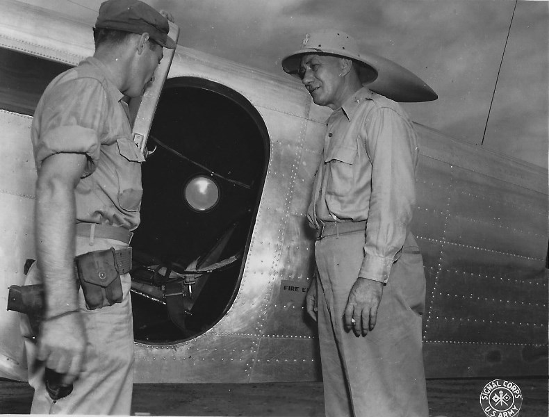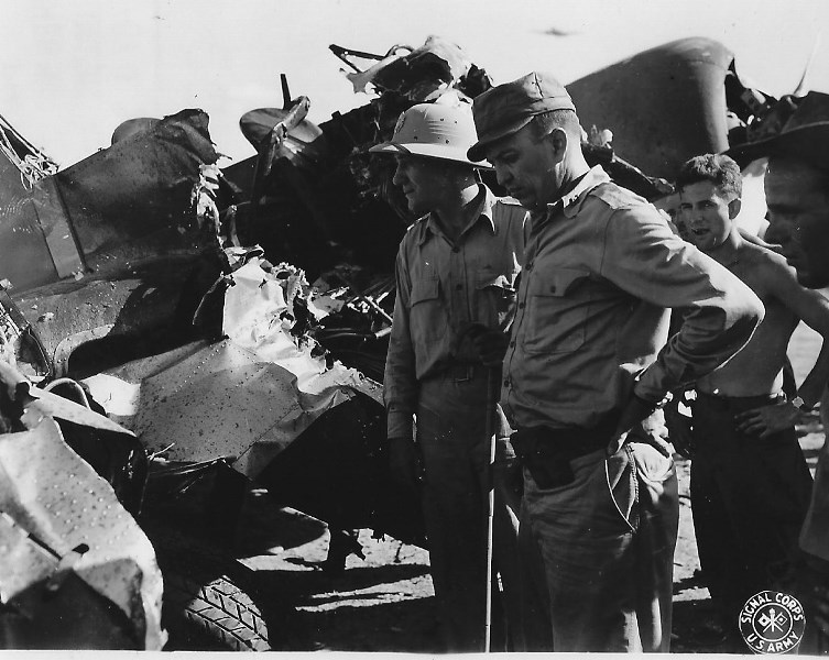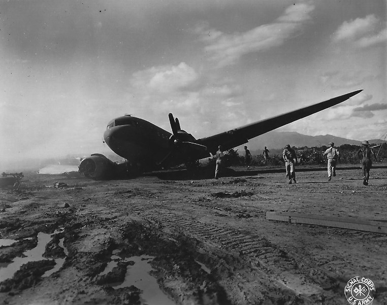 BURMA - Touring the forward areas, Brig. Gen. Lewis A. Pick, commanding general of the Ledo Road project, recently stopped and chatted with Pfc. Glenn Ballowe, of Chicago, operator of a road grader on the airstrip at Myitkyina. "Dangerous business, operating engineering equipment under Jap fire," Pick remarked. Ballowe's reply was a hoarse shout, "Look out, general!" Pick whirled around and was confronted with a C-47 cargo plane, out of control, careening crazily off the landing strip into the area occupied by the general's personal plane and the road grader. Pick and his executive officer, Col. C. S. Davis, and a score of officers and enlisted men suddenly found themselves in the path of the runaway ship. Rank and dignity were forgotten as everyone, to quote the general, "Got the hell out of there." The C-47 crashed into the general's plane, crushing it like an egg shell, and caromed off on its path of destruction for another 50 yards, smashing against the grader where the general had been standing. Still shaken after his close call, Pick was silent as he sadly surveyed the wreckage of his ship - a brand new, twin-engined plane, fresh from the manufacturer in the States. The shreds of the general's private seat in the plane, ripped to pieces by the propeller of the C-47, were more testimony of the narrow escape. For, had the accident occurred five minutes later, the general would have been seated in the plane, preparing to continue his tour. And, as battle-grimed American infantrymen, Chinese soldiers and Chindits milled about the wreckage, Ballowe elbowed his way up to the general. "Sir," he grinned, "flying is a dangerous business, too." Photos by U.S. Army Signal Corps from the collection of Colonel Charles S. Davis Courtesy of Joe Davis CLOSE THIS WINDOW |
