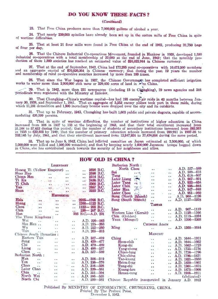 "With the compliments of the Kunming Office MINISTRY OF INFORMATION"