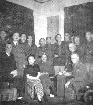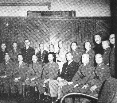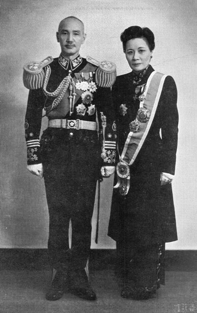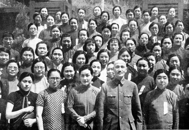 Generalissimo and Madame Chiang Kai-shek pose with delegates responsible for the promotion of women's wartime