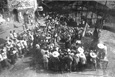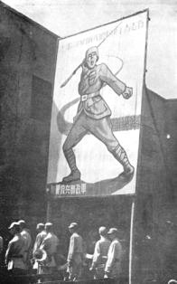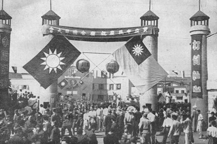 United Nations Day in Chungking Poster on right column says: "Down with the Axis"