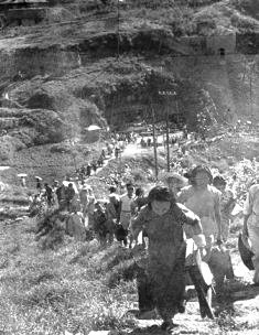 Chungking populace emerging from air raid shelters during "Bombing Season"