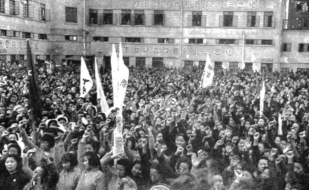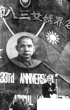 Madame Chiang Kai-shek in mass meeting on International Women's Day in Chungking