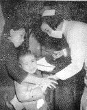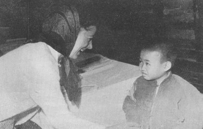 Miss Anna Lee Whitmore having a chat with a war orphan
