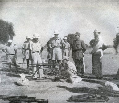 A Chinese officer explaining Chinese strategy to Willkie with the help of a miniature battlefield