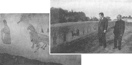 Willkie looks at mural painting with Chairman of Kansu Province. The painting shows the Chinese sage, Confucious,