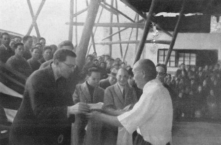 Chinese labor representatives presenting a banner to the Parliamentary Mission