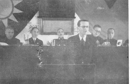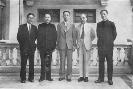 Ho Ying-chin, Chief of Staff and Minister of War; Extreme right Chen Li-fu, Minister of Education.