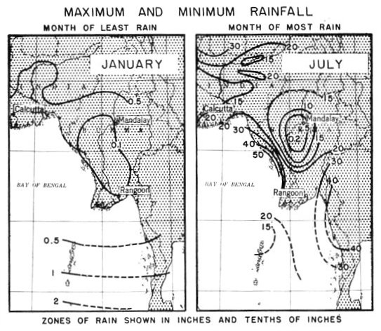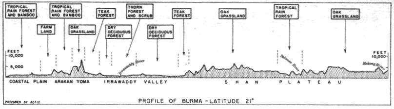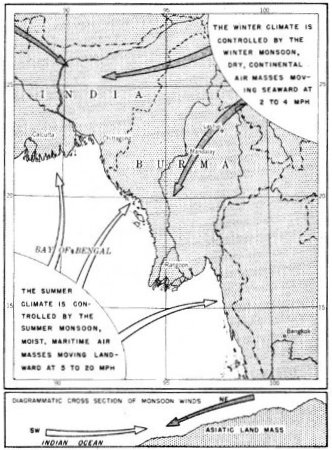 This page features interesting maps, diagrams, illustrations and selected text from the original U.S. Army Air Force Handbook of Burma and Northeastern India, used in the China-Burma-India Theater of World War II. All text is exactly as published in the handbook. Where indicated, you may click on the image to display it enlarged in a new window.