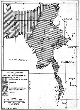 Northeastern India and Burma lie in southeastern Asia along the north and the northeastern edge of the Bay of Bengal.The area extends from 8 degrees north to 28 degrees north (approximately the latitudes of Panama and daytona Beach,Florida, respectively); most of it is within the tropics The longitude of the area is from 88 degrees east to 102degrees east, or directly on the opposite side of the earth from Central America and western Cuba. Burma covers 261,610square miles, an area slightly smaller than Texas.