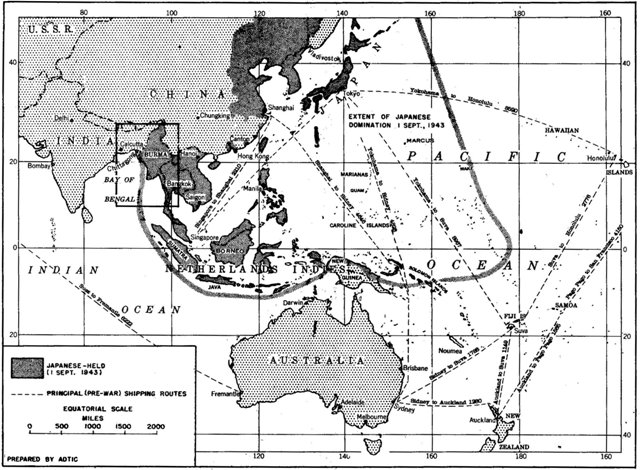 When the Japanese took Rangoon early in 1942, the Burma Road, vital supply route to China, was closed.Since then, the Japanese in Burma have constantly threatened direct invasion of India, Burma and the Andaman Islandsafford the enemy bases for aerial and naval attacks on shipping in the Indian Ocean and on ports and important industrialcenters of eastern India.