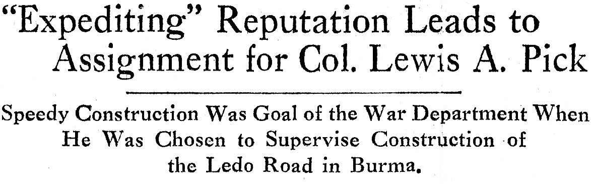![]() WASHINGTON, March 21 (AP) - Col. Lewis A. Pick, the brawny 6-foot army engineer responsible for the speedy construction of the Ledo road in Burma, was chosen for the job because of his reputation for "expediting," a War Department spokesman said today.