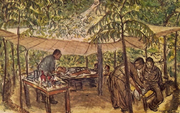 Parachute tent, Medical Aid Station, Tank Unit, Burma jungle.