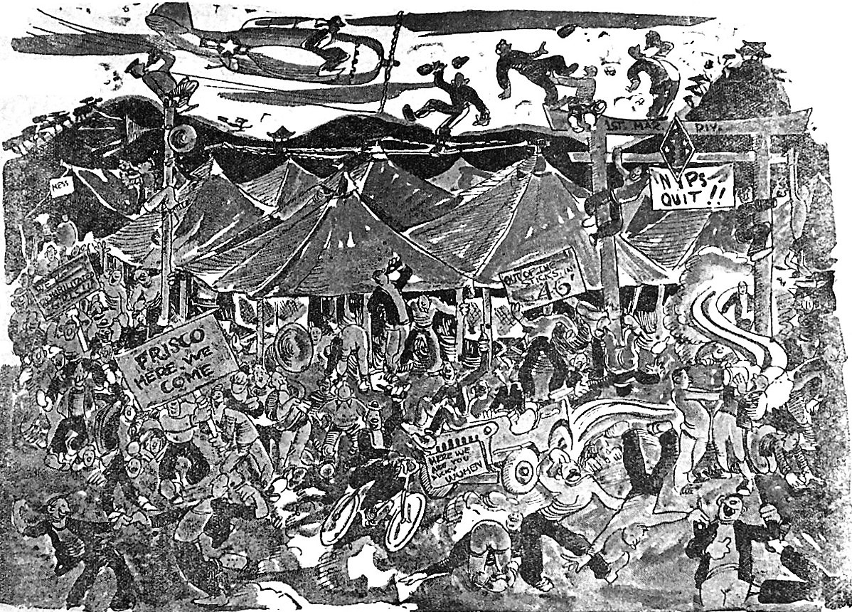 MAJOR GENERAL KELLER E. ROCKEY, USMC, Commanding General; LIEUTENANT COLONEL J. H. McMILLAN, USMCR, Special Services Officer; 2ND LIEUTENANT R. D. LYONS, USMCR, Officer-in-Charge; Sgt. WILLIAM MARTIN CAMP, Editorial Advisor; Corp. VICTOR I. BUMAGIN, Managing editor.STAFF: Corp. William J. Mangum, Sports; Pvt. Jack Sloan, Corp. Edward Daily, Corp. William F. Hart, Circulation Advisor. CONTRIBUTORS: S/Sgt. Norris Anderson, Sgt. Roland G. James, S/Sgt. Wayne F. Young, Sgt. John O. Davies, Jr., Corp. Arthur Sarett, Corp. Fred Travis. PUBLICATION OF THIS NEWSPAPER IS IN COMPLIANCE WITH LETTER OF INSTRUCTION NO. 1100, COMMANDANT, HQS. U.S. MARINE CORPS, WASHINGTON, D.C.PUBLISHED WEEKLY BY THE THIRD AMPHIBIOUS CORPS AT THE CHIHLI PRESS, TIENTSIN, CHINA, WITH FUNDS OF THE SPECIAL SERVICE SECTION.NO PAID ADVERTISEMENTS ACCEPTED.CONTRIBUTIONS BY MARINES WELCOME.ADDRESS COMMUNICATIONS TO THE EDITOR, THE NORTH CHINA MARINE, SPECIAL SERVICES OFFICE, THIRD AMPHIBIOUS CORPS, FMF., C/O FPO, SAN FRANCISCO, CALIF.10,000 COPIES THIS ISSUE. ![]() NOVEMBER 10, 1945 Original issue of THE NORTH CHINA MARINE shared by Jeff Titchenal Image of General Rockey has been added to this re-creation Copyright © 2017 Carl Warren Weidenburner TOP OF PAGE ABOUT THIS PAGE E-MAIL YOUR COMMENTS CLOSE THIS WINDOW |