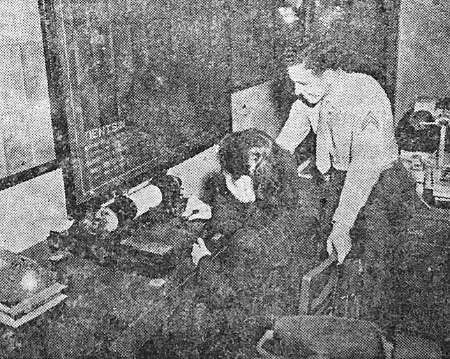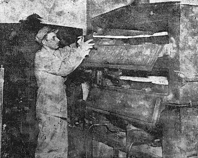 A typical Oriental-style typewriter is used by an insurance company here in Taku road. It weighs 50 pounds. A complexity of rollers, discs,