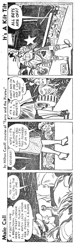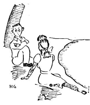 T/7 Hank Gould BIRTHDAY PICNIC GOOD PLACE FOR HANDING A LINE Today was Arabella's birthday and I just couldn't wait for it to end. Those darn coolies of mine - everytime I give one of them enough training to handle an American broom, he's taken away from me and put in a higher echelon. I can't even teach them to iuse a wheel barrow right. The other day I was issued one, after signing about fifteen documents and promising to supply a pint of my blood. I brought the barrow to my coolie laborers to use for hauling dirt. The next thing I knew, I saw two of them picking it up and putting it on another native's head, to carry it away. That's the things I have to put up with on my job. But I don't mind it too much. Last week I was promoted. Now I have five more coolies to take care of. Well the work day was over, and I was sure glad of it too. Arabella and I had a swell evening planned. We were going to have a picnic out in the country. The catch to the whole thing was that she invited some friends and told me to ask Abdul to come along. It was planned to be a Happy Birthday Picnic. Of course Abdul had to bring Maisie Gupta along.