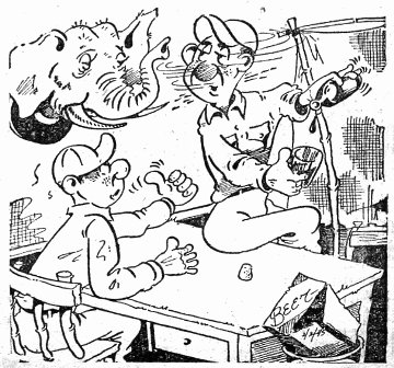 One More Reunion - Old Boss This Time 1347 BU, Assam - It may have been Sgt. Phil Klein's imagination, but he thinks he heard Lt. Abe Oliver muttering something about "a raise" as the lieutenant made his way to a States-bound airplane for a permanent change of station. If he was muttering at all, that would have been the logical thing to mutter, as Klein, chief clerk in the P & T passenger section here, had just given Oliver his Stateside ticket, in their first encounter in 26 months. The raise ought to come when Klein goes back to work for Oliver in Baltimore, where the two have been boss and employee (but also friends) for eight years. Equip Ambulances with Oxygen Tanks As Shock Combatant 1327 BU, Assam - A common Stateside practice in Air Corps hospital detachments was emulated recently at this base with the installation of oxygen tanks in ambulances. Now infrequent in the ambulances of Assam units, this piece of life-saving apparatus is expected to be generally adopted. Primarily, oxygen finds its greatest use in cases of severe shock. Crew members of a crashed plane at a considerable distance from a hospital thus are enabled to combat the resulting shock and a painful road-trip before receiving medical attention. Only recently a seriously-ill GI arrived at the hospital in perfect physical condition for an operation because oxygen had been administered en route. Ambulances being used both for crash work and general duty have been equipped with tanks. Drivers and enlisted medics have been instructed in their use. Three Shots in One Just Experimental, Warns Head Surgeon Hq., Calcutta - If you're looking forward to a one-shot job when you need four immunizations, you might as well quit now. Although experiments with injecting several vaccines simultaneously have been carried out, such action is not in accord with Army regulations, according to ICD's division surgeon, Col. E. A. Abbey, who added that it is also contrary to sound medical practice. "The reasons are of a technical nature, and of no interest to non-medical personnel," Col. Abbey said. "They are well-founded on accepted scientific facts. Therefore, in the future, you and I and all of us will take our shots by the multiple puncture method, just as we have before." (Ed's note: HUMP EXPRESS has a red face for having raised your hopes too high, and hurries to straighten the record.)