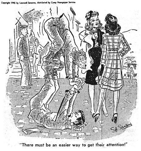 The CHINA LANTERN is the newspaper for the United States Forces in the China Theatre and is published three times weekly by Lt. Lester H. Geiss, Editor-in-Chief, for military personnel only. Lt. Harry D. Purcell, Managing Editor; Lt. Maurice Pernod, Production Chief. Pfc. Richard P. Wilson, Reporter. Editorial offices: Hqrs., SOS China Theater, Kunming, China, and Hqrs., SOS, Calcutta, India. Printed by Ajit Kumar Sinha at the "Amrita Bazar Patrika" Press, Calcutta. Unless specifically stated, news and features appearing in the China Lantern do not necessarily represent the views of the War Department; the Commanding General, USF, CT, or any other official source. ![]() APRIL 13, 1945 Adapted from the original issue of The China Lantern Better quality image of Adele Mara used in this re-creation Copyright © 2019 Carl Warren Weidenburner TOP OF PAGE PRINT THIS PAGE ABOUT THIS PAGE SEND COMMENTS CLOSE THIS WINDOW |