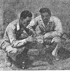 It was the plan of Maj.-Gen. C. L. Chennault, commander of the 14th Air Force, that these field parties would be the key to air force operations in the Salween area, where enemy troops were widely dispersed over a protectively rugged terrain. The plan first took form five months before the campaign began, when Gen. Chennault directed the establishment of a school for the training of Air Force personnel in methods and techniques. At the school both air force and ground personnel were briefly introduced to each others problems, and a definite technique established so that they might make their needs known to one another. During the early operations the men who took part in the field work encountered many difficulties. Parties working in the Tatangtzu front, among them whom were S/Sgt. Edward T. Willet, Ebenezer, N.Y., Sgt. Azerie J. Michaud, Lisbon, Me., and T/Sgt. John H. Marshman, Frankfort Heights, Ill., found many technical 'bugs' that had to be worked out in the field in spite of adverse working conditions. Relaying back information brought in by advance Chinese units and transmitting intelligence that they had been able to pick up through minute scrutinization of the Jap territory through field glasses, involved responsibility. The work done at this time helped to perfect the system for use in later engagement with the enemy. Many men in the air parties operating through the earlier part of the campaign, including T/Sgt. Gene R. Chesko, Nanticoke, Pa., Sgt. John G. Flick, Clifton, N.J., and Sgt. Gordon L. Wood, St. Louis, Mo., were forced to exist for long periods of time on scanty diet of rice, supplemented by bamboo shoots and local vegetation. On one gala occasion they butchered and cooked a wild pig that they had hunted down in the forest battleground. The fall of Tatangtzu, an almost impenetrable Japanese position, was due largely to the terrific pounding that the Jap positions received from American planes, and their operation was coordinated with Chinese ground troops throughout the entire attack by the air parties. Among those who served with the advance units were Sgt. Robert H. Earlywine, Dayton, Ohio and Sgt. Delmar Pegram, Chesapeake, W. Va.