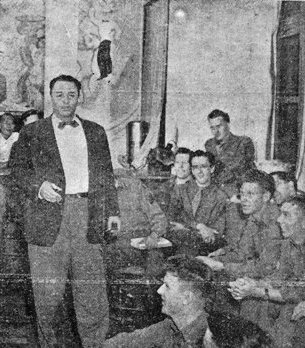 Note Of Luxury In China KUNMING - GIs here are literally riding around in leaky oil drums instead of hopefully waving curved thumbs at passing vehicles or sweating out time-defying rickshaw rides. The oil drums, hump-happy and defective, were sliced, pounded flat and mounted on ordinary 4x6 GI trucks to fashion bus bodies worthy of Uncle Sugar Able manufacturers. Getting the bumps and wrinkles out of the flattened-out drums posed a problem for Kunming's body builders. And the lack of modern grinding and polishing equipment in this metropolis was everything but encouraging to the success of the project. However, a Chinese-developed plastic solution was obtained and spread over the outside of the bus body with gratifying results, providing a hard, smooth surface with a definite affinity for paint. Horsehair padded, leather covered seats were installed inside the bodies to add a final touch of luxury. Instigators of the wheeled oil drums are Capt. Richard H. Frohock of Litchfield, Maine., and Lt. Albert V. Sparks of Everett, Pa., both Ordnance officers serving with the China Theater Services of Supply. China's 'Fisher Brothers' not content to rest on their laurels, have made arrangements with a Chinese concern to build several additional buses from oil drums. However, a number of improvements on the original, which required 36 drums, will be added. namely, a changeable, illuminated sign to advise 'customers' of the bus' destination and departure time, automatic door latch and an easy window opener and closer. The buses will be employed to transport troops between installations and the city. Which should relieve a lot of 'achin' backs.' ATC 'Hobby Shop' Launched In Kunming 1340 BU, KUNMING - A handicraft hobby shop is the most recent innovation here for troops with a yen to make their own trinkets for homeside consumption. The club, headed by Pfc. Morton Haftel, Philadelphia, Pa., offers a range of leather, metal, plastic and wood mediums for work. A complete set of tools line each of the three work benches. Pfc. Haftel is attempting to secure Chengtu silver, considered the finest in China, so that presents of a more valuable nature might be made. Currently the most popular item is Plexiglas, culled from the field junk pile. It is quite easily worked and emerges with a fine gloss. Battalion Nite Club Opened In Kunming KUNMING - Signal corpsmen in southwest China have their own stateside night club . . . a battalion project. Complete with fine music, entertainment and even bar flies, the "Bar of Fun" is a hangout when life in the city gets too tough. Officially, the special service office under Lt. William R. Collar of Chicago runs the club, but unofficially, the club is straight GI. After Maj. John J. Fettig, New York City, the battalion commander, saw what was happening to his men as they attempted to compete with boring nights and local "jing bao juice" in Kunming, he had a couple of rooms set aside in the new headquarters building and turned the rest of the job over to a couple of the boys. S/Sgt. Andrew J. Czompi, Columbus, Ohio and Sgt. Sammy Leiderman, Norfolk, Va., went to work. The two and a half rooms were "redecorated." A couple of handy men provided indirect lighting while others did the painting. Chairs and tables and wood for a bar were "GI requisitioned . . . " Quickly the club took shape. An opening night was planned and the club was ready for business. Today, as some of the men say, "Sammy runs the joint." really the "joint" runs Sammy. Czompi has been rotated and Leiderman and his crew carry on. They're everywhere, behind the bar, serving at tables, ever ready to give each "Joe" anything he wants. Station XJOY Claims International Audience HQ. WEST CHINA RAIDERS - "Our range is limited but our audience is international," boasts Sgt. Harold Hoffman, station manager of XJOY, Armed Forces Radio Station of the West China Raiders. The program of the popular station are tailor trimmed to GI tastes but the recorded broadcasts of stateside entertainment have made XJOY a favorite spot on the dial with Chinese listeners as well. Hoffman also revealed that recently the station received a plug from its first British fan, Chief of Press Attach C. F. D. Lowe of the British Embassy. Mr. Lowe sent thanks to XJOY for "brightening up the air and enlightening us with up-to-the-minute news coverage."