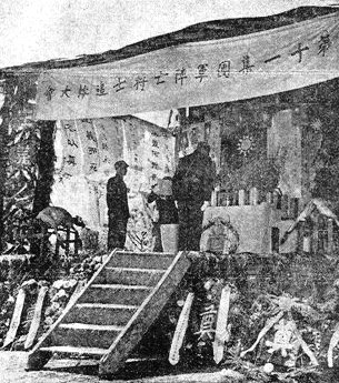 Chinese Service Honors Roosevelt Several hundred American soldiers ranking from private to general officers took part in a service Monday in memory of the late Pres. Roosevelt, at which General Lung Yun, governor of Yunnan, took the ancient and intimate role of chief mourner. At the ceremonies held in Kuomintang headquarters many uniformed groups of Chinese were present. A wreath was laid at the foot of an altar by Maj. Gen. G. X. Cheves, Commanding General of Services of Supply, on behalf of the various U.S. Forces in the area. The Rt. Rev. Ronald Hall, Anglican Bishop of Hong Kong, read scripture and delivered a prayer. The China Theater band played "Rock of Ages" and "Onward Christian Soldiers" and the Chapel Choristers sang "The 23rd Psalm" in a preliminary portion of the ceremony. Governor Lung stood in the place of chief mourner while the ancient Chinese rites of offering of flowers, incense and wine to the spirit of the departed "friend of China" were observed. A professional mourner intoned an ancient eulogy and in company with the governor all present bowed three times towards a portrait of Pres, Roosevelt, wreathed in flowers and lighted with Chinese tapers.