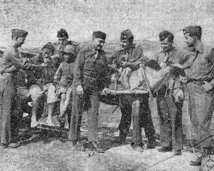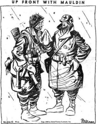 A. No. Time served in the National Guard counts towards longevity pay but does not count toward retirement pay. Q. Can a man be shipped back to the States if his brother has been killed in action in this war? I tried to check with my CO but he didn't seem to know anything about it. My brother was killed in France, and I am serving in the Philippines. A. No, only a sole surviving son of a family that has lost 2 or more sons in the war can be returned to the States under WD policy. Even then, if he is engaged in non-hazardous duty overseas he may be kept at his overseas assignment. Q. I have been a private for 39 months. Recently I read that privates could be upped to Pfc under a new WD regulation. However, my CO refuses to give me the promotion because he says I haven't "been on the ball." Does he have to give me that precious one stripe? A. No. Promotions to Pfc are not automatic. Change 5 of AR 615-5 states specifically that men who are eligible for such promotion will not be upped in grade automatically. The promotion is supposed to be reserved for those qualified and deserving but denied advancement because of lack of vacancies in the TO. Q. Is it possible to receive the award of the Purple Heart for frostbitten feet in the absence of any wound? A. Yes, for severe frostbite; but not for trenchfoot. FIRST REPLACEMENT IS NAMED "CO FOR A DAY" "CO for a day" was the honor conferred upon Corp. Albert Tramposh, Glendale, Long Island, when he arrived in China recently to become the first replacement assigned to the Golden Tigers fighter squadron. Expecting to feel strange in his new surroundings, Corp. Tramposh was treated instead to a welcome heretofore reserved for Hollywood movie actresses and star-shouldered military visitors. The warmest greetings was extended by T/Sgt. Adolph A. Ogar, E. St. Louis, Mo., who immediately took the newcomer in hand. "Your every wish is our command - especially mine," Ogar assured the corporal. A thirty-month overseas veteran of North Africa, Italy, India and China, Ogar was shaking hands with his "ticket" to Shangri-La.