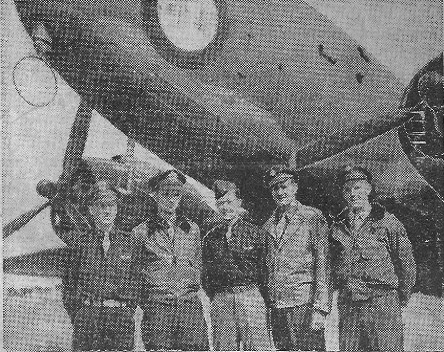 ’Gissimo Adopts American Customs A 14TH AIR FORCE BASE, CHINA - Generalissimo Chiang Kai-shek recently visited this U.S. Air Base traveling aboard his personal plane, "Mei Ling" named after his best girl - his lovely wife, Soong Mei Ling, better known to Americans as Madame Chiang Kai-shek. Quite a stir was created when the Generalissimo's plane appeared on the taxiway to pick him up during a recent visit to Maj.-Gen. C. L. Chennault, commanding general, 14th Air Force, and the crowd that had assembled to see him off saw the words "Mei Ling," which the Gissimo had ordered inscribed on the nose of the plane. The "Mei Ling" is an American built C-47 made available for the Generalissimo's use and flown by a crew of especially picked 14th Air Force men. Piloting the ship is Capt. John S. Papajik, New York City, while the co-pilot is Lt. Leonard J. O'Dell, Charleston, West Virginia. Picked as navigator for the "Mei Ling" was Lt. William C. Watson, Huntsville, Texas, and completing the crew is Sgt. Ralph D. Yankee, Kansas City, Mo., who acts as engineer and Sgt. John P. Upton, Traverse City, Mich., radio operator. The Generalissimo had been visiting General Chennault for the purpose of bringing his personal thanks to the officers and men of the 14th Air Force for their most recent efforts in the war in China and to wish them continued success. 16 CBI GIs Back In U.S. For Release NEW YORK (ANS) - Sixteen veterans of the China-Burma-India Theater were back in the United States this week for discharge under the point system, the first of such a group to be brought back by Air Transport Command planes. The men arrived at LaGuardia field after flying 57 hours from Karachi, India, via Casablanca. Most of them expected to be back in civilian life within 48 hours.
