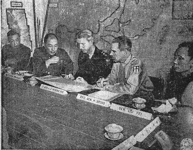 MEETINGS BRING BETTER UNDERSTANDING Sitting opposite each other at the conference table and in the even less formal talks held after the meeting, American staff officers and their Chinese counterparts have succeeded in getting to know each other and each other's difficulties. This personal approach to the innumerable small difficulties bound to arise when any attempt is made to co-ordinate the supply, personnel, training, and intelligence policies of two organizations separated by vast differences in methods and outlook, has been a major factor in the successful operation of the Combined Staff. A typical meeting starts with a short orientation of the world situation by an American officer. The maps and charts with which the War Room is equipped are ideal for this purpose, and all staff members begin their discussion with an up-to-date picture of the war effort as a whole. Most ordinary questions brought up can be settled at the meeting although more complex problems are submitted in the form of memoranda for further study and recommendation by the staff sections concerned. CHINESE CUSTOMS OBSERVED None of the oriental amenities are forgotten. There are two pourings of tea, served Chinese style, during each session, and the name plates set before each officer are in both English and Chinese. An actual breakdown of the type and number of questions discussed would cover the entire war effort in China. It still would not reflect the total achievement of the Combined Staff, which lies in the friendly co-operation between two Allies which it has served in part to create and which it continues to foster. By allowing close contact between the staffs of the Chinese Army and U.S. Forces in China, it has made it clear that the better acquainted Chinese and Americans become, the more they respect each other and the more they can accomplish. Co-operation and co-ordination are not just words. In Asia, they are the key to our success. By attaining both to a remarkable degree through their Combined Staff, the soldiers of China and America have come one step closer to victory in the pacific.