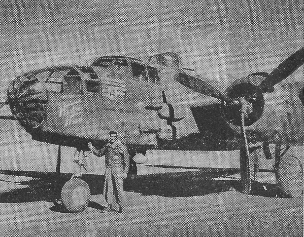 After 131,280 Air Miles, 101 Bomb Drops, 'Hazel' Retires A FOURTEENTH AIR BASE, CHINA - Hustlen Hazel, the namesake of a beautiful Chinese girl and a twin-engined bomber of the famous fighting Jiggs Squadron, has been retired from active combat duty. With approximately 131,280 air miles flown on her original engines - total of 483 hours and 20 minutes, ole Hustlen Hazel, as she is affectionately referred to by members of the air crews and ground personnel, has flown her last combat mission in the China Theater. With a record of 101 bomb drops, this medium bomber has flown on every type of mission against Japanese installations in occupied China, Burma and French Indo-China. Low levels, high levels, night missions, bridge-busting, sea sweeps and food dropping to isolated Chinese troops all were in a part of Hazel's campaign against the Japs. During her long and gallant combat career, Hustlen Hazel was sometimes called the lucky ship as the enemy was able to leave their mark on her on few occasions. While operating in a valley near Kweilin, Hazel was hit by explosive 20mm shells in her left wing, ripping a wide hole near the nacelle. Also on this mission, two bursts of 7.7 rifle fire damaged her left engine. After landing at her home strip, S/Sgt. Leroy E. Sloan, Shawnee, Oklahoma, her crew chief, had her well patched and back in the air within a few hours. Sloan has been crew chief of Hustlen Hazel since September 1944. Assisting Sgt. Sloan in his duties is Sgt. Robert J. Ehmke, Milwaukee, Wis. Both Sgts. Sloan and Ehmke have been members of the famous Jiggs squadron since coming overseas. ONE ‘OBJECTIVE BURMA’ SCENE DRAWS CHEERS AN ADVANCE CHINA BASE, 14TH AF - It was during the tense and dramatic scene of the paratroop raid on the Japanese radar station in the motion picture "Objective, Burma" when a member of the "Liberators of China" group set off a howl of approval. The Hollywood GIs had killed off all visible resistance at the station. In the course of mopping up, three troopers disappeared into the Jap mess hall. Staccato noise of machine gun fire was heard. The audience tense and quiet was aroused when someone exclaimed, "They got the Mess Sergeant." ![]()