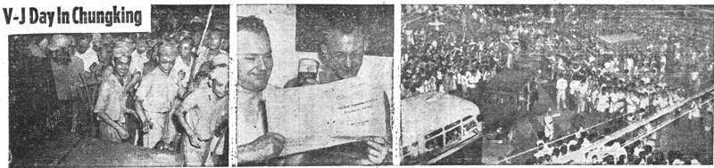 One of the features of the hospital is that it is equipped with stateside metal hospital beds and stateside mattresses. An eye clinic, with the most modern and complete optical equipment, complete X-ray facilities, an extensive laboratory, all are set up to give patients at the general hospital the most up-to-date treatment and care. Staff of the hospital includes many highly skilled medical specialists not regularly allocated to smaller hospitals. A pathologist, radiologist, dermatologist, anesthetist, dental specialists and many others are among the skilled professional men assigned to the general hospital. MADAME CHIANG WILL RETURN TO CHINA NEW YORK, Aug. 22 (AP) - The Chinese News Service said last week that Madame Chiang Kai-shek was expected to return to China "very soon," probably within a month or so. Nanking To Be China's Capital NEW YORK, Aug. 22 - Dr. T. H. Chang, spokesman for the Chinese government, said the Chungking radio broadcast recently that Nanking, pre-war capital of China, would be reestablished as the national capital when the transfer from Chungking can be made. ![]() Pictured with some of their trophies, team-mates include, seated left to right: Corp. Keith W. Rigio, Cedarville, Ohio; Corp. Herman B. Killian, South Pittsburg, Tenn.; Pfc. Bob M. Nedrow, St. Joseph, Mo.; Corp. Joe Manley, Alameda, Cal.; Pfc. Edward D. Hubbard, Oswego, N.Y.; Sgt. Earl E. Meyers, Clupper, Va.; Corp. Joseph B. Mackin, Osceola Mills, Pa.; and Corp. Clarence J. Richardel, Lockport, La. Standing left to right: Corp. Joseph J. Mousley, Chatham, N.J.; S/Sgt. Bob Ralston, Denver; Lt. Reid E. Wagner, Barberton, Ohio; Sgt. William T. McCue, Paterson, N.J.; Corp. Foy H. Hammons, Jr., Hope, Ark.; 1st Sgt. Wilmer Stone, Harrisburg, Pa.; Pfc. Chester Bolinski, Buffalo, N.Y.; Pfc. Wayne White, Raleigh, N.C. and Pfc. Irving R. Winogradsky, New York. ![]() ![]() The CHINA LANTERN is the newspaper for the United States Forces in the China Theatre and is published three times weekly by Lt. Lester H. Geiss, Editor-in-Chief, for military personnel only. Lt. Harry D. Purcell, Managing Editor; Lt. Maurice Pernod, Production Chief. Pfc. Richard P. Wilson, Reporter. Editorial offices: Hqrs., SOS China Theater, Kunming, China, and Hqrs., SOS, Calcutta, India. Printed by Ajit Kumar Sinha at the "Amrita Bazar Patrika" Press, Calcutta. Unless specifically stated, news and features appearing in the China Lantern do not necessarily represent the views of the War Department; the Commanding General, USF, CT, or any other official source. ![]() AUGUST 23, 1945 Original issue of The China Lantern shared by Hal Baker Better quality images of Nagasaki and Gen. Wainwright have been used in this re-creation Copyright © 2014 Carl Warren Weidenburner TOP OF PAGE PRINT THIS PAGE ABOUT THIS PAGE SEND COMMENTS CLOSE THIS WINDOW |