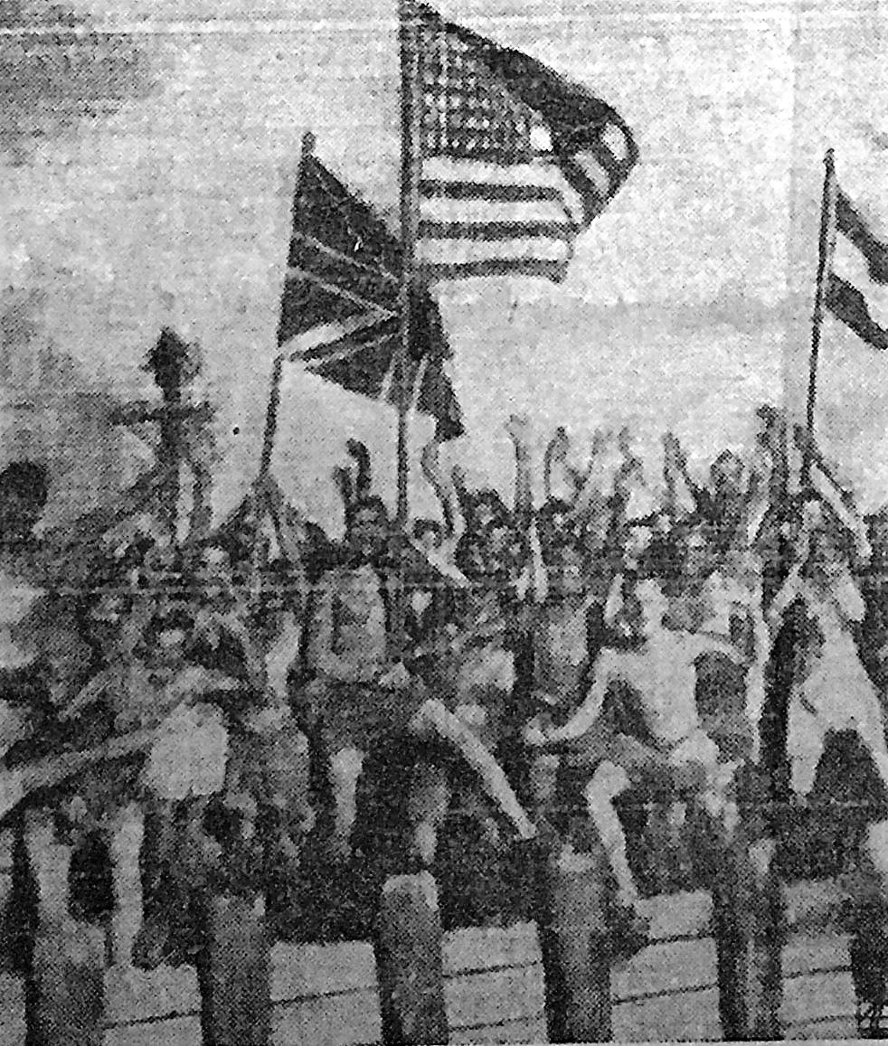 All With 24 Months Out Within A Year WASHINGTON (ANS) - The Army plans to demobilize all men with two years' service between now and September 1, 1946, chairman Andrew May of the House Military committee reported. May said the War Department as yet has made no definite commitment on such a program, but that it hopes to release two-year men "as soon as possible." His statement came as Sen. C. Johnson (D-Col.) asserted Army "brass hats" want voluntary recruiting to fail, "because they love the draft." He urged repeal of the draft law and said congress must act at once to speed service releases. Jap ‘Cannibals’ Ate Yank, Aussie Soldiers LONDON (AP) - Japanese "cannibals" tied the hands of captured American and Australian soldiers behind them, used the helpless victims for bayonet practice while they still were alive and then sliced off human flesh for food, the Australian Government charged in an official report on Japanese atrocities. It is clear from authentic evidence that many under-fed Japanese troops had "resorted to cannabalism," the government declared. It will be submitted to the United Nations War Crimes commission. In some cases, human flesh actually was found in Japanese mess kits or over fires. The document added that captured Japanese soldiers admitted they also had cut up and devoured some members of their own army who were killed in action. The summary of only a portion of the Australian charges was made public by Dr. Herbert and V. Evatt, Australian Minister for external affairs, who is in London to attend the Foreign Ministers' Council meeting. "If those responsible for these outrages are allowed to escape punishment, it will be the grossest defeat of justice and a travesty of principles for which the war has been fought," Evatt declared. The contents of the document he said, were "such as to shock and dismay the feelings of every decent human being." He said the report was based on testimony of more than 500 civilian and military witnesses and documentary evidence. Evatt asserted that the confirmed atrocities reveal "practices of barbarity which could not have become general without direction of superior officers." Evatt declared: "I emphasize most of all that the war crimes committed by Japanese forces in the field, while utterly wicked on the part of the actual perpetrators, are also part of a system of terrorism in which all Japanese troops and commanders particularly." He asserted that "it is our duty to see that those who organized the system are punished and that the system itself is completely eradicated. Those at the top are in our view at least equally guilty with the actual perpetrators on the spot." Jap Bows Himself Off Tokyo Wharf TOKYO (ANS) - An effusive Japanese civilian bowed himself right off a dock into the water Tuesday as crowds of Japanese turned out to greet the first American ship to tie up at a Tokyo dock since before the war. Crew members of the vessel, a small Signal Corps communications craft, fished the dunked welcomer from the bay while officers were greeted by Tokyo port officials.