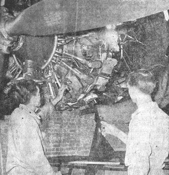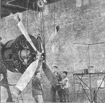 Specialists and Technicians Comprise Many Phases of Aero Engine Test One of the most important departments in this theater is the Test Block Department located on this Depot. Impatient or "nervous in the service" GIs sometimes protest against the noise that comes resounding across the base as engines are given their "exercise" on these blocks... vital tests to break engines in for flight operations and to find defects if any, in engines which will someday be over the Jap in China or Japan itself. Engines come into the Depot for overhaul from the various using organizations in the theater. of course they are first handled by Engine Repair from where they are sent to the blocks. Here they are mounted on the blocks and connected with the test cell, put into operation and given every strain and speed which would be present in an actual airplane. The RPM is increased every half hour at normal rate (cruising power) and is then increased to full power for ten minutes. the interior of the test cell is similar to the cockpit of the plane with an instrument board and window facing the engine. The operator is present all the time that an engine is running and he watches over it like a hawk noting every detail. On a form made for the purpose he makes time reports from his instruments, recording the RPM, oil pressure, oil in and out temperature, cylinder head temperature, manifold pressure, fuel pressure and oil and fuel consumption per hour. Superintendent of engine test is M/Sgt. Henry J. Willimsen of Grand Rapids, Mich. The Master really means something here because this boy is just that when it comes to engines. He has been in India fourteen months. Foreman at the blocks is T/Sgt. Junior H. Johnson of Atchison, Kansas, also a fourteen month IB Theater veteran. In addition to his technical aptitude this boy is also an all around athlete excelling at football, basketball and track. Another test block foreman is S/Sgt. Lyle K. Glasgow of San Diego, Calif. Lyle, a specialist in some phases of engine overhaul, has been here 18 months. He is a former employee of the Solar Aircraft Co. Ever patient and ever alert are the boys who sit and observe hour upon hour the functions of the engine. Pfc. Carl V. Smith of Montour Falls, N.Y., 15 month man, is always right on the beam. Bennetsburg, New York's Pfc. Robert L. Kaufman is an excellent engine diagnostician. A schooled electrician, Bob spends his leisure hours dreaming about the day when he can return to that little gal who has been wearing his ring for two years now. Young Pfc. Robet J. DeMott of Pattersonville, N.Y. has been over here 18 months and is doing a splendid job as an operator. Veteran Pfc. Franklin Schichart of Marinette, Wisconsin is one of the outstanding operators on the job. Cpl. Joseph H. Gwynn of Mentone, Calif. has been over here eighteen months. Joe worked on the construction gang and later became an operator. Cecil E. Osborn, a Pfc. from Eureka, Ill., is a consistent fellow who is also quite versatile. He is a former glider pilot trainee in the army and in civilian life attended Illinois State Normal U where he excelled at all sports. S/Sgt. George Zrelock of Freeland, Penn. is a specialist at test block operation. He has been in India for nineteen months. An excellent observer at the cells is Pfc. John Vern Olson of Lincoln, Nebraska who has been in India for 16 months. A former Wright Aero engine tester Cpl. George M. Herzig of Hamilton, Ohio is now using his talents in the field for the army. The corporal is a graduate of the Butler County Business College where he was known as quite a golfer. Expert engine test man Sgt. Michael R. Lally of Newton, Mass. lists his civilian occupation as "husband." Sgt. William T. Biall of Sandy Spring, Md. got his first experience with engines as the manager of a service station back in the pre-Army days. Sgt. Andrew Mares of Astoria, Long Island, N.Y., expert test block operator has been in India fifteen months and with the rest of his contemporaries is doing a splendid job. Chief of production control at the engine test is T/Sgt. William J. Spangler of Indianapolis. Bill was a mechanic in civilian life and attended the Curtiss Wright aero scool in the army. Cpl. Gerald F. Dunne of Brooklyn is the chief clerk at Engine Test. He has been in India for fourteen months. Defects, of course, are found in some engines and whenever possible repairs are made by the maintenance and repair crew of airplane engine mechanics and specialists who work out of what they call the Test Block Hospital. S/Sgt Quentin R. Beall of Elyria, Ohio knows his engines like a baby specialist. A former Republic Steel employee, Beall is the rookie of rookies at the test block, having just recently completed his first month in India. In reverse we have the veteran Sgt. Dale Colson of Boise, Idaho, former crew chief on Gen. Hackett's plane. This technical expert has been in India for nineteen months. From Mendian, Miss. comes specialist Pfc. Sam Morgan who has spent a year in India. before entering the service Sam, worked for a year and a half as an engine mechanic at an AAF field in Mobile, Ala. Sam's partner in many jobs is Pfc. Henry N. Waters who has spent a year in the theater. How long in India? "Nineteen months and six days," says Sgt. Delwin Clint Crum of Milan, Mo. Crum, who was a farmer in civilian life, is apparently counting the days until his return. In the meanwhile though he is building an enviable record. Pfc. Raymond L. Fisher of Wilkes-Barre, Penn. has spent ten months in India as well as some time in North Africa. He is considered tops in his line. Hospital crewman Pfc. M. A. Thompson hails from Bushong, Kansas. We can't say we have ever heard of the place but it certainly sent a good man into airplane engine work. Thompson has spent fifteen months overseas in India and North Africa. Warren G. harding (no relation) is a sergeant who comes from Swanton, Ohio. A former engine mechanic for Ford Motors, now foreman 