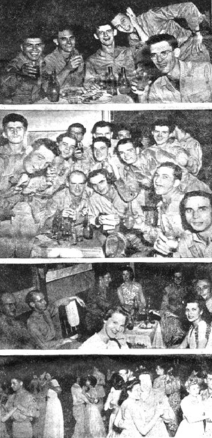 Once again the gallant 320th launches a ferocious attack in an effort to gain control of positions lying in the Commandtown area. On Saturday evening, May 6th, GIs of this organization dug deep into their dusty B bags, taking whatever materials that would be necessary for a successful performance at the Squadron Dance. And was it a success! Unaccustomed as they were to pushing anything around other than parts racks, the fellows did a swell job of entertaining themselves and those girls who were fortunate enough to be there. Stiff knees clanked and backs creaked to the jive beat out by the Air Depot Band. There was a hall full of happy chatter and laughter as each objective was encountered. Only after the last few unexploded shells were popping were we able to learn just what the outcome had been. Not contrary to our expectations, the objective had been reached. Happiness, joy, laughter, freedom from the regular routine - and just a hellova lot of those men who were responsible for the management by which everything went over so smoothly.