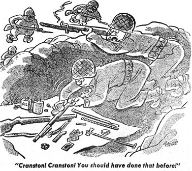 Cases of Cola For GI Parties Coca-Cola is now available by the case for legitimate unit parties and dayroom affairs due to a feat of legerdemain of the new PX officer who has been able to increase the Depot's quota to 300 cases per day. The committee head or appointees can see either Capt. Charles Hemenway or M/Sgt. Dale L. Willis, exchange manager, to obtain the cases. The cases and empty bottles must be returned within 124 hours. if not, the outfit responsible will be placed on the PX blacklist and will not be able to take advantage of this or other deals contemplated by the PX. Such stringent measures are necessary, according to Sgt. Willis, because the PX's further quota is based on the bottles they return. "We can only get refills for whatever we turn in. Last time we had an original stock of 250 cases alloted to us. In no time we were only drawing 170 cases because so many bottles had disappeared. If the fellows want Coca-Cola, they've got to be sure to return the bottles to us. "If the deal works out properly and the men cooperate, there is no reason why we cannot start selling the barracks cases at a time." ![]() THE TIGER RAG is a weekly publication edited and written by and for the Enlisted Personnel and Officers of APO 492, and is under the direction of the Commanding Officer, COLONEL FRANK D. HACKETT and Public Relations Officer, MAJOR STUART R. PETERSEN. STAFF: EDITOR... Pfc. Hollis H. Estill; ASSISTANT EDITOR... Pfc. Art Goldberg; ART... T/5 Layton H. Wicksten; PHOTOGRAPHY... Sgt. Les Gurwitz. Statements or policies reflected through the columns of this publication under no circumstances are to be considered those of the United States Army. Articles submitted by Officers and Enlisted Men represent personal opinions only. Internet adaptation by Carl W. Weidenburner.