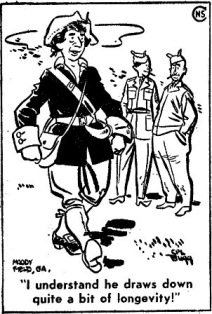 TIGER RAG STAFF ARTICLE It floats thru the air with the greatest of ease, It chews up your drawers, those strips on your sleeves, It's a chow-hound on cans and the beer in 'em too, This introduces mildew, which is strictly snafu. All of which warns you that this is a wee dissertation on fungus or mildew, and unless you'd rather stumble around the Depot resembling Tarzan, sans even his loin-cloth, this just might prove educational. The word was might, for if you're a graybeard around this swamp you've probably invented a few iotas of your own on this subject. Anyway, mildew is a low down form of plant life that floats around in water or air waiting for a place to land. And it will land anywhere, at any time, without invitation or an airstrip to skid down on. Give it a spot that's moist and warm and dark, and buddy you've got company. On your clothing, your equipment, and even inside envelopes reading your mail and censoring it highly by leaving smudges or discoloring patches. This smudge spreads like ink on a blooter and is a signal that the microscopic parasites are adding to their waistline at your expense. Later, these smudges become denser, fuzzier and more in need of a barbaer, and covered with powder. The powder grains are millions of seeds who haven't heard of a worker's union but spread more mildew around the clock and long past Christmas. That good old sunburn material, sunlight, is your greatest ally in keeping equipment dry. However, this doesn't mean that your are to chop a hole in the roof to let the beams angle in. Just air your clothes and et cetera frequently, squander several ounces of elbow grease in brushing, and try to keep them dry and away from darkness. The idea being to let in warm, dry air which will circulate around and through the articles. Dubbin on your shoes is a definite "Sunday-punch" against fungus. Perhaps your feet will sweat more, but what of it? After all the rest of your torso is undoubtedly dripping so why be unfair and exclude your feet? For shame, for shame! So there it is. If you go to put on your socks some morning and wind up wearing a pair of khaki spats that barely covers the hair on your shin bone... well, the blame can't be placed on the Chaplain. No siree, for fair warning has been made and the die is cast: "mobilize for mildew or mildew will immobilize you." The Bengal Air Depot - A Year Ago A Tiger Rag streamer announced the contest to select the Sweetheart of APO 492 from among the Stateside sweethearts, girlfriends and wives of Depot personnel. The new type (good for six months throughout the theater) PX ration cards were explained and VI Russell left the ARC staff at Rajah's Rest after a short tour of duty there. The Fourth of July celebration, held at Argapara, was heralded as a magnificient success... parties responsible were the Bengal Tigers band, the ARC girls who acted as hostesses, the buffet supper and light drinks, Calcutta girls who work on the Depot, and the enthusiasm of the dancing and singing GIs themselves (not neccessarily in that order). Sporting activities were practically non-existent due to the ever-present rains, which even threatened to kick the feet from under the ARC's July 4th Celebration plans. And the popular songs of the day, according to a listing in the Bright Lights column, were in this order, "I'll Be Seeing You," "Long Ago, Far Away," "I'll Get By," "San Fernando Valley" and "Don't Sweetheart Me." Passive Air Defense Relaxed The AAF has the Jap air fleets so well throttled that the blackout has been definitely done away with throughout the provinces of Bengal nd Assam, once India's first line of defense. According to a Headquarters release this week, all passive air defense is ended. ![]() The families of GIs stationed in this area can now assume that their men are in no greater danger from any enemy action than if stationed in the continental limits of the U.S. Boyhood Chums Reunited Here Two old friends met on the Depot this week after a separation of eleven years. They were Sgt. Steve Koppy and Cpl. George Weinhandl who last saw each other in North Dakota in 1934. At the time the families of both fellows were living in Dakota as next door neighbors and Steve and George climbed trees and made eyes at the girls together. The Koppy's though, moved to Indiana and Steve and George heard of each other only in the correspondence maintained by their families. About six months ago the Koppys returned to North Dakota on a visit to the Weinhandls and in the course of conversation it was discovered that both of the boys were in India at APO 492. Letters of course were immediately dispatched to Steve and George who had a happy reunion here on the Depot. USAFI Open For Officers Announcement was made that effective July 6th, army officers were eligible for the full benefits of the USAFI program. Enrollment instructions and other procedures presently in effect for enlisted personnel of the army are now also applicable to commissioned personnel. Thus, upon payment of the two dollar enrollment fee, an officer is permitted to take any correspondence or self-teaching course that USAFI offers. Army officers enrolled on the fee basis in effect prior to July 6, 1945 for USAFI or University Extension courses will be considered to have paid the initial enrollment fee for continued USAFI services. No refund of officer enrollment fees accepted by USAFI prior to the July 6th date will be made.