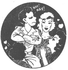 Reasons quoted for this predominance of pulchritude are higher peacetime death rates among males of all ages, as well as this war's toll of manhood. Until last year, although it doesn't seem possible, males always outnumbered the lovely lassies. But now statistics reveal the girls are in the lead. Hurray. That's all, brother, just hurray. The growing deficit of men indicates a larger proportion of spinsters in the future. Now this is sad; but bring on the future! For confidentially, an over distribution of women is undoubtedly the best happening since the bustle departed and the arrival of a good five cent cigar. However, there need be no alarming goosebumps among would-be brides of the next few decades. After all, why should there be? Any girl who can pull a plow and support hubby beyond the means he's accustomed to is entirely eligible, and some man will probably condescend to haul her in. One important thing overseas GIs have learned is that beauty is truly only skin deep. And half the time they grandly overlook even the skin, and seriously contemplate anything that moves under its own power. Yes sir, the population is changing and, it's about time. Informed circles who have studied the matter feel that the reason males have a higher death rate is because they're completely weakened by doing all the wooing and chasing. Let us now in unison kink the prayer-bones and give praise, and more, await the revolution of the chase. The majority of the males will probably be breathlessly hiding... out on the front porch step illuminated with neon. Afraid? Are you kidding?