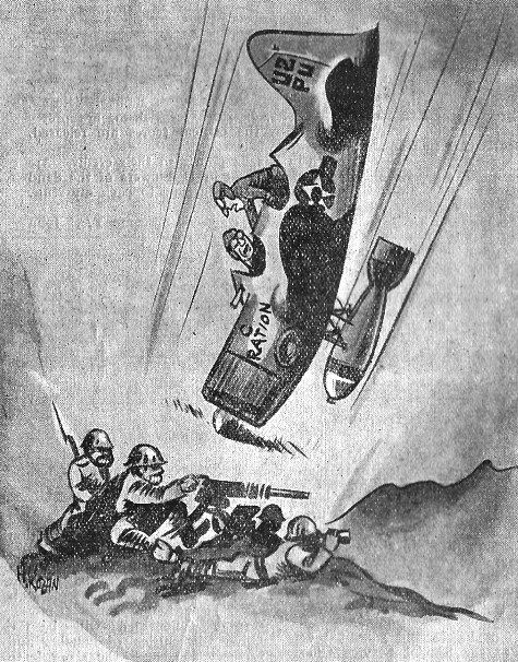 USAFI courses and the GI Bill of Rights are methods that have been initiated to prepare the serviceman for his return to civil life. The USAFI courses enable a GI to study up on the vocations he intends to enter or rejoin after his discharge as well as offering an opportunity to soldiers to learn about any trade or occupation they intend to become a part of. The GI Bill of Rights, one of the most ambitious pieces of soldier legislation ever turned out by Congress, has set up facilities to aid the returning soldier to borrow money for a home or business, offers free schooling, helps in job placement, guarantees free hospitalization and medical care and in various other ways makes the conversion from khakis to pin-stripes much more painless that it could be. But, and it is a big but, almost all authorities in the United States agree that the solution to post-war employment rests with the individual communities - with Federal aid. The reconversion of the United States' "civilian army" poses a problem of awe-inspiring magnitude. It is a problem that can be licked by the people of your home town. Already citizens of many cities and towns at home have established veterans' centers. These centers coordinate readjustment and re-employment facilities provided by state and federal agencies. A typical and highly successful plan for veteran readjustment has been in use in Connecticut. The purpose of the plan, as explained by its deviser, is "to supply something the GI Bill of Rights, operating on a wholesale basis, lacks - treatment of the veteran as an individual, with individual traits, wishes, aptitudes and interests." The industrial community of Bridgeport is one of the cities that has successfully adopted the program. The community center there was organized by a veterans' re-employment and advisory committee composed of local representatives of all available agencies interested in the welfare of veterans, including the U.S. Veteran's Administration, U.S. Employment Service, state agencies, veterans' organizations and citizen groups. The center is equipped to see the returned servicemen all the way through the problems of selecting a vocation, training, apprenticeship or formal education and job placement. If a vet has decided on his choice of vocation, finding a job is usually simple - a conference with the U.S. Employment Service has often done the trick. If the ex-serviceman has not made a choice, he is referred to the job counseling division where he discusses his interests with trained advisers and is given aptitude tests. Veterans' centers have been set up in places like New York City, Detroit, Oklahoma City, Altoona (Pa.) and Lenawee County (Mich.). In New York City there are two main guidance bureaus for ex-servicemen, the veterans' service center and the New York City veterans' center. Both centers have similar coordinated facilities for advising veterans on such problems as jobs, education, health and housing. The New York City vet center, opened in June, is in a nine-story building in which more than 30 public and private agencies are represented. The veterans' center, which was opened in April '44, has already serviced 50,000 veterans. Detroit's information center, opened last October, has guided over 12,000 ex-GIs. This bureau is strictly a referral center to direct vets to the agencies qualified to give the needed service. The Oklahoma City vet center is similar to those in Bridgeport and NYC. And so they go. The people at home are not forgetting the servicemen. The post-war national equanimity depends on them, just as the victorious war has depended on you. BENGAL AIR DEPOT - A YEAR AGO The Engine Overhaul shops formally opened in a ceremony that was literally sprinkled with brass onlookers. Among the notables who attended the opening of the largest engine overhaul plant outside the United States were: Maj. Gen. Thomas J. Hanley, Jr., Brig. Gen. LaVerne Saunders, Brig. Gen. James L. Spry, Col. Robey, Col. Thomas B. MacDonald of the American contingent and Mr. R. G. Casey, Governor of Bengal, Air Marshal O. E. Carter, Maj. Gen. F. H. Skinner and Air Commander P. S. Blockey of the British group. Capt. R. D. Hicks, Depot Adjutant, welcomed the visitors at the jetty and Brig. Gen. (then colonel) Frank D. Hackett, CO of the Depot, made the opening address. The ordnance supply work of the 1953d Ord. Co. was related while the Sweetheart of APO 492 contest swung into its second week with photos pouring in to the Tiger Rag office. The Depot Review featured Pvt. John J. McCarthy - now first sergeant of the 83d Hq. Sqdn. And the consensus of opinion of mud-happy GIs was: "It's wet!"