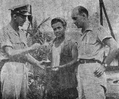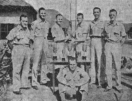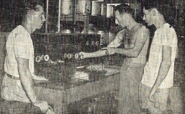 Latest of the rooted installations to become air conditioned is the Radio Station of Radio Operations which has blossomed into a mecca for the radio operators on or off duty. "We just can't seem to get rid of them lately," joked CWO Joseph Vogt, Radio Operations Officer. "I never did see the men more enthusiastic to stay overtime or take over. Some of the fellows have been wondering if they want to go home - now that we have air conditioning." Sgt. Ronald Coulter, a radio station operator, claimed it's impossible to make mistakes these days with the cooling system keeping all alert and hands perspiration free to twist the dials on a moment's notice. A Tale of One City - And Two Men Sgt. Arthur C. Reddock of the 83d Hq. Sq. picked up the phone. "This is Capt. Willis Paulk," drawled a rather stern voice at the other end of the line. "I want you to report to me at your earliest possible convenience." Reddock thought a moment, wondering if he' snafued up something. He stalled for time: "Where shall I report sir>" He couldn't place Capt. Paulk, but the voice had an ominous ring. "Report to me in town, sergeant. You and I have a situation to discuss." "In town? "What kind of situation?" Reddock felt sweat pop on his forehead. "Are you sure you have the right man, sir?" "Completely. Isn't your home Fitzgerald, Ga.? Didn't you go to school there? Suddenly Reddock felt his spine relax and a light of understanding seeped through. "Paulk! Why you (censored)." And that is how Sgt. Reddock and Capt. Paulk got together for a reunion. The two men come from a small town of 7,000 population. Capt. Paulk is stationed in the northern part of India. Sgt. Reddock reported in town as requested and the two high school buddies reviewed those wonderful civilian days long ago. "Believe me," Reddock said, "the way that conversation began had me worried. I thought I was a dead duck and my sins had caught up with me."